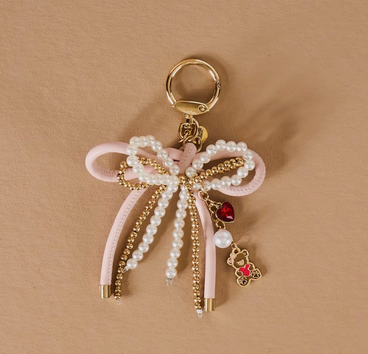 bag charm / layered bow and bear